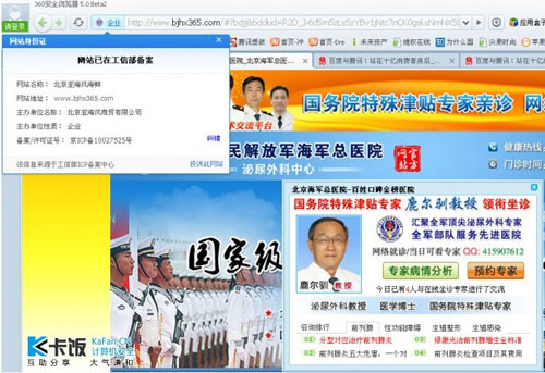 360安全瀏覽器的網站名片功能也是利用工信部ICP/IP地址/域名信息備案管理系統的。